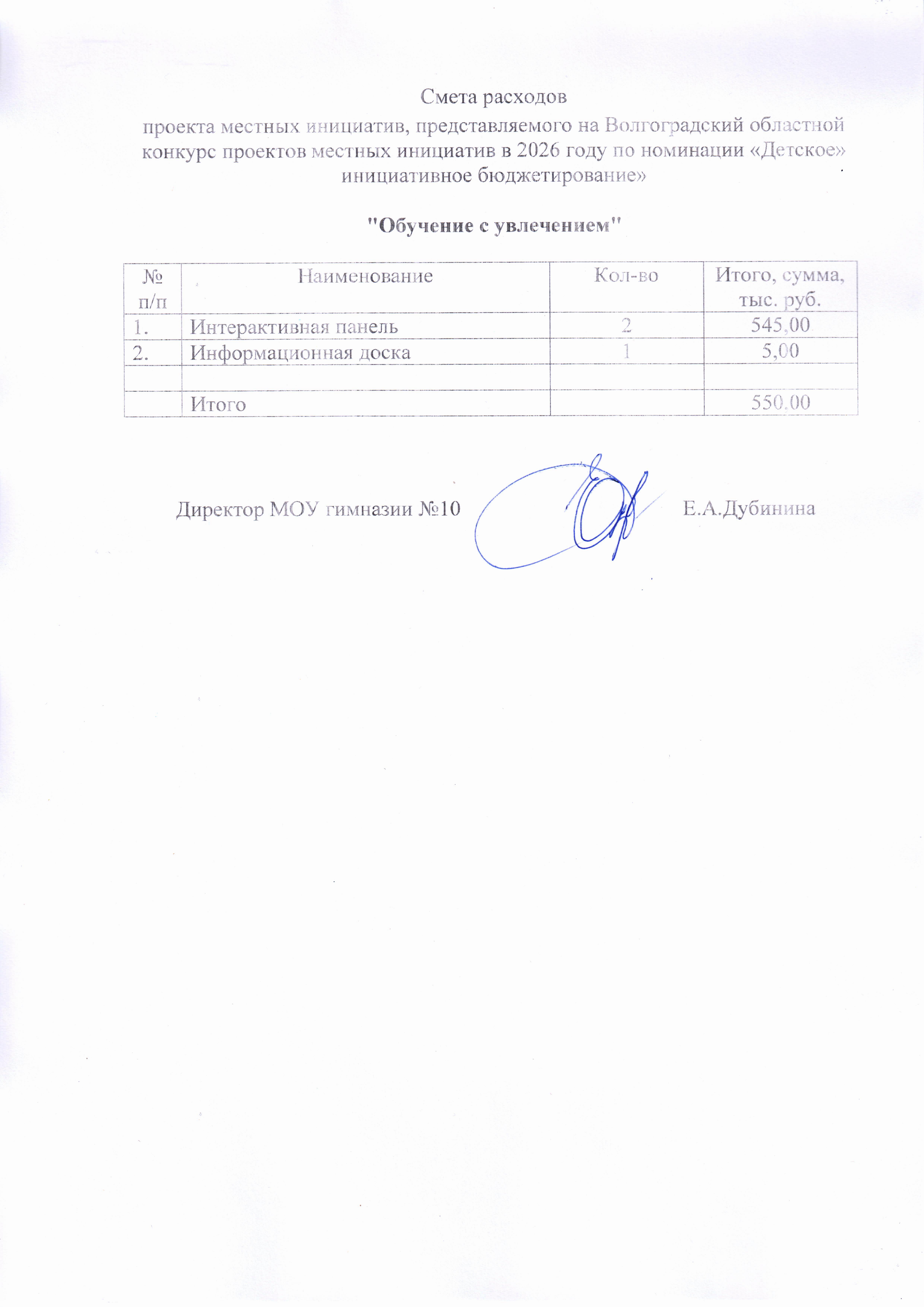 Информация о реализации проекта местных инициатив"Обучение с увлечением", представляемого на Волгоградский областной конкурс проектов местных инициатив в 2026 году по номинации «Детское» инициативное бюджетирование»